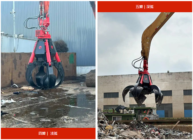 ·大塊/不規(guī)則(如廢鋼、石塊)→ 優(yōu)先考慮瓣數(shù)少(3-4瓣)、淺弧、鈍尖的抓斗。